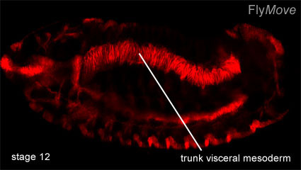 Confocal image of a stage 12 embryo with Fasciclin III-labelled visceral trunk mesoderm